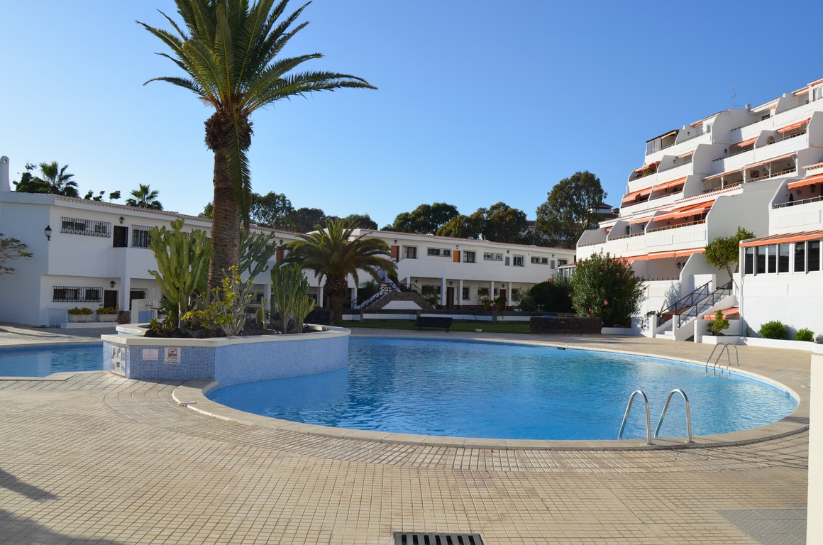 El PASO: недвижимость в Испании на побережье, в нескольких метрах от пляжа Лос Кристианос в перспективном и красивом комплексе в Эль-Пасо. 1 спальня, ванная комната, американская кухня , цокольный этаж 17м2, терраса с видом море, 2 мин ходьбы ходьбы до моря, 48м2, общий бассейн € 100 в месяц. Цена € 220,000.00